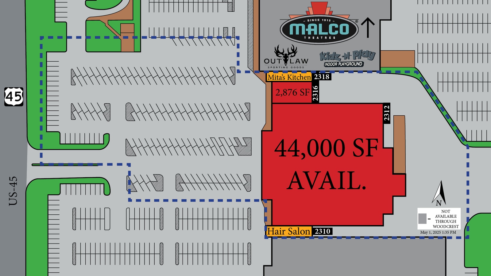 Columbus Centre presents an exceptional retail leasing opportunity along Highway 45, one of Columbus, Mississippi’s busiest commercial corridors. Well-positioned, the shopping center offers outstanding visibility to nearly 25,000 vehicles per day (VPD) and benefits from a diverse surrounding tenant mix, including Malco Theaters, Outlaw Sporting Goods, and national dining options such as Applebee’s, Taco Bell, and Papa John’s. The nearby Baptist Memorial Hospital – Golden Triangle also contributes steady daily traffic and consumer activity in the area. Previously occupied by Bargain Hunt, the center’s former 44,000-square-foot anchor space is available for lease, offering divisibility potential starting at 10,000 square feet, providing flexibility for retailers of all sizes. This large-format retail space is ideal for national big-box retailers, grocery stores, fitness or wellness operators, wholesale clubs, or medical facilities. Tenants can take advantage of prominent building and pylon signage, ensuring excellent brand exposure in a high-traffic retail environment. Additional in-line retail suites are available, supported by ample, well-lit parking and multiple ingress and egress points for convenient customer access. Minutes north of the intersection at Highways 45 and 82, Columbus Centre serves a robust trade area with an average household income of $82,425 and nearly $100 million in annual consumer spending within a 2-mile radius. Secure space today with a special introductory as-is lease rate and join a thriving retail destination in this thriving Columbus hub. Woodcrest Capital welcomes first-time and franchise businesses to its centers with easy-to-read leases and flexible terms. Woodcrest Capital is also sufficiently sophisticated to please the largest of national credit tenants. As a family-owned business with over 40 years of experience in commercial real estate, Woodcrest Capital owns and operates a diverse portfolio, ranging from Class A centers in the busiest neighborhoods to troubled centers it’s rehabilitating in struggling rural communities. Contact us today to discover the ideal location for your business, as we typically have multiple retail opportunities available in the immediate area.