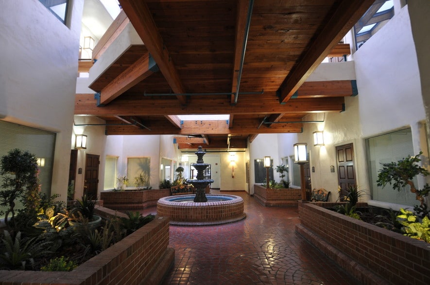 Three story office buildings, with fountain and skylights in the atrium, elevator serviced second and third floor.