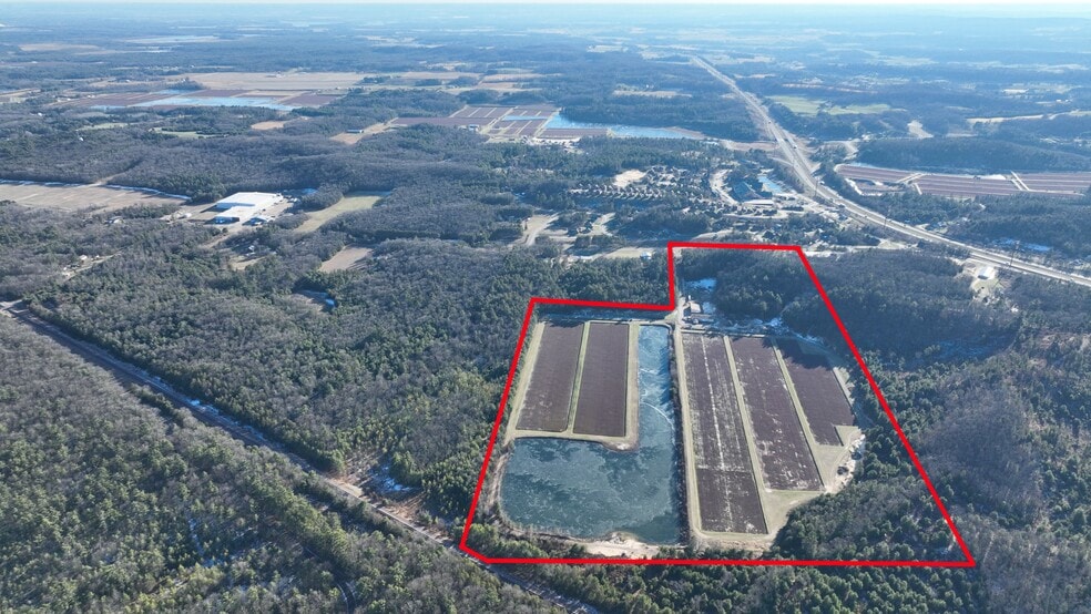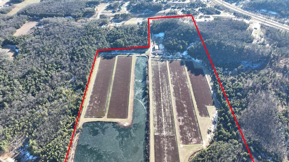 63-acre Prime Development Opportunity-Monroe County. Just off of I94, across from Three Bears Resort and adjacent to a County Forest. Currently a cranberry bog with commercial buildings, high capacity well, 9 acre pond and a residence on a 5-acre lot