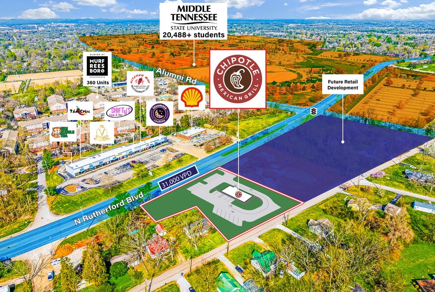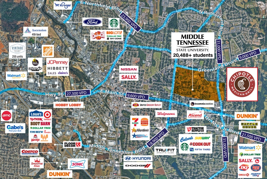 - Located Directly Across the Street From MTSU (20,488+ Students), Generating Consistent Demand From Students, Faculty, Staff, and Visitors