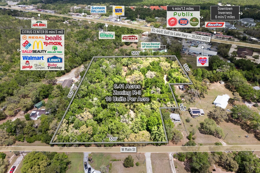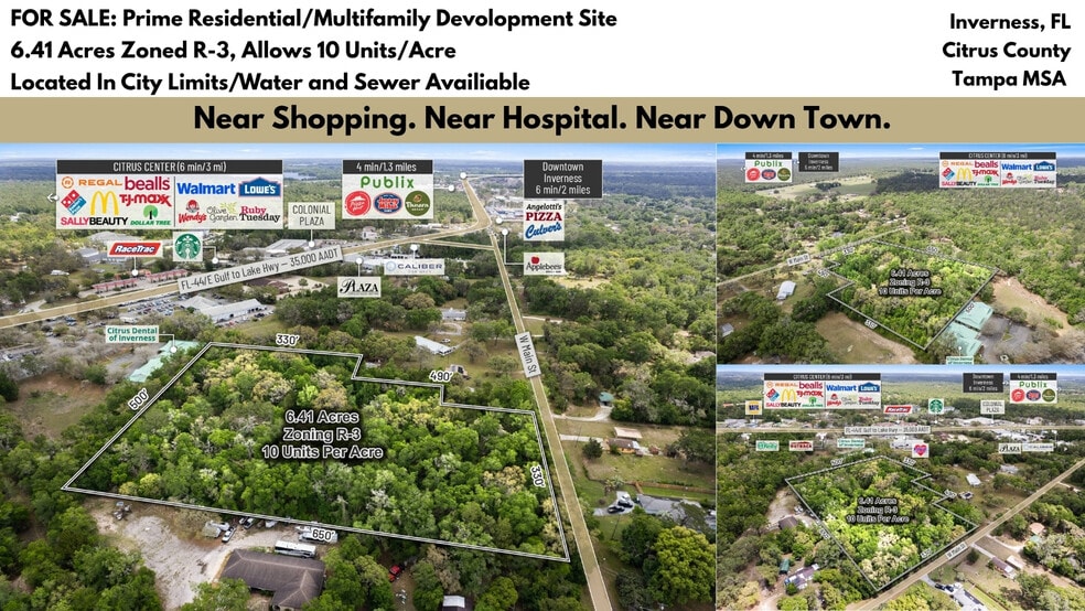 Positioned just off SR 44 / Gulf to Lake Highway (±28,000 AADT) and within city limits, the site offers strong accessibility and connectivity to the surrounding region. The property is in close proximity to key demand drivers, including Citrus Memorial Hospital, Publix, and the upcoming Aldi, as well as the Downtown Inverness Square, which features a variety of restaurants, boutiques, and local retail. Nearby recreational amenities such as Whispering Pines Park and the Tsala Apopka Chain of Lakes further enhance the overall livability and appeal of the location. The site is also within a 15-minute drive of Lecanto, Hernando, and Floral City, expanding its reach across the greater Citrus County area.