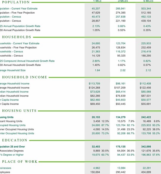 - Strong neighborhood demand supported by dense residential and major corporate neighbors