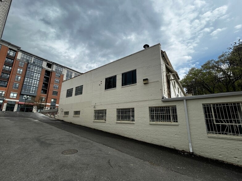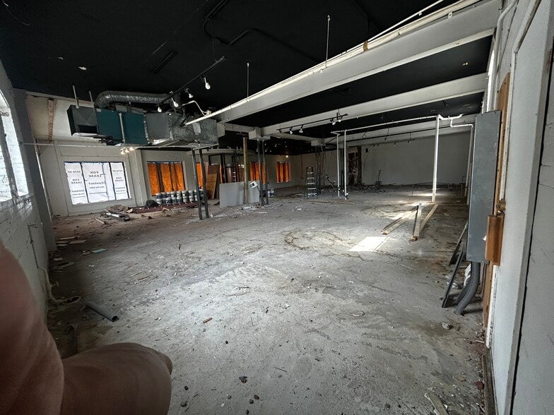 Larger retail space with front parking. Next to an alley with additional parking on the side and in the back.