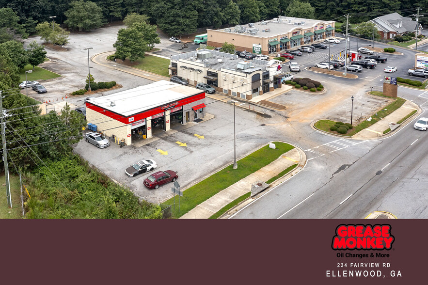 Brent Fisher & HSI Commercial are pleased to offer this 1799 sf fully operational auto shop occupied by Grease Monkey. Absolute NNN 20-year lease with 7+/- years remaining. 5-year options at 10% rent increases. This property is situated on Fairview Road with a dedicated turn lane. Fairview Road is a major retail and service corridor in Ellenwood (24k+ VPD). Lease Guarantor, Grease Monkey International, is one of the largest oil change operations in the U.S. and brings in roughly $250M annually. Please contact us for more information about this property.