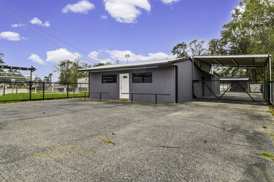 Multiple office space and storage areas. Can be used for retail services, office or warehouse space. Additional storage behind building, completely fenced, high traffic area. Very clean building and move-in ready.
