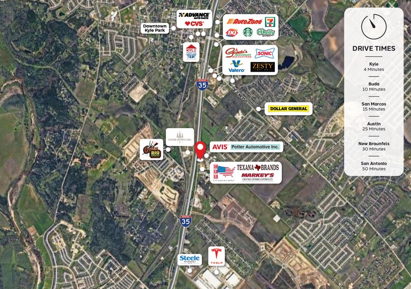 This 2,627 SF retail/warehouse for lease in Kyle, Texas, offers excellent visibility along the IH-35 corridor. Situated on a prime 1-acre site with IH-35 frontage, the property is in a high-growth area between Austin and San Antonio. Zoned Retail/Service with level topography, it provides easy access for logistics, storage, or light industrial use. Kyle’s expanding economy, rapid population growth, and strong demand make this an excellent opportunity for businesses seeking a well-positioned warehouse space.