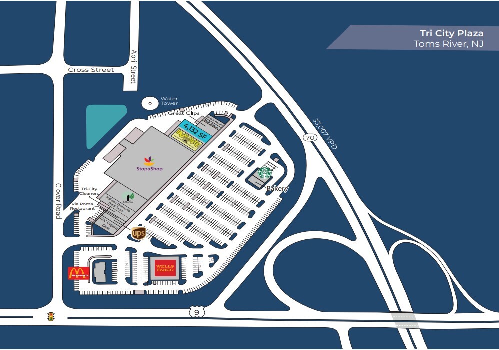 - At signalized intersection of Route 9 & Route 70.