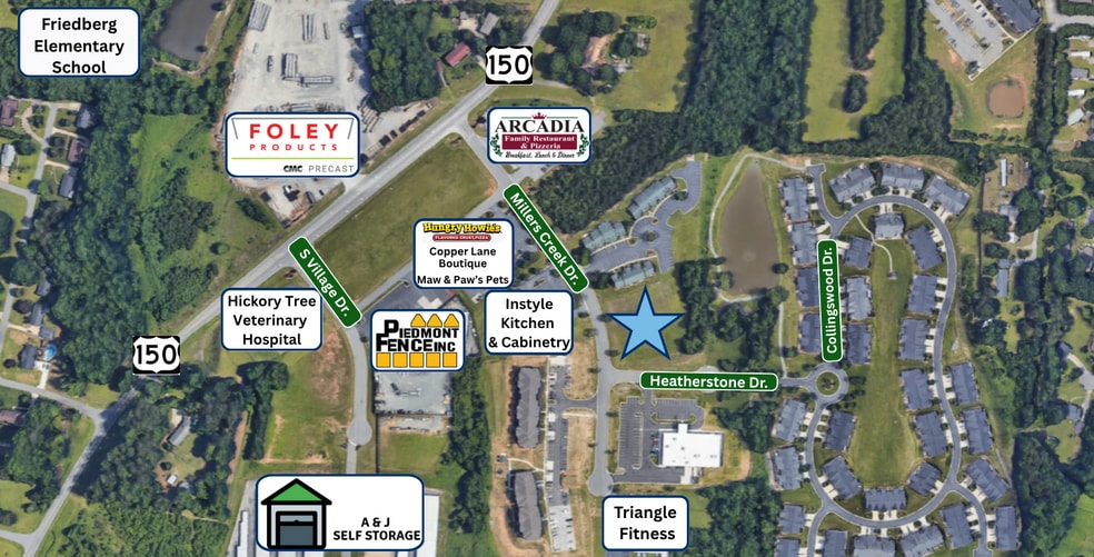 Located at 237 Millers Creek Dr in Winston-Salem, this ±1.67-acre land parcel offers excellent development potential in a growing corridor. The property benefits from convenient access to major routes including Interstate 285 (AADT 37,000) and State Route 150 (AADT 13,500). Surrounded by expanding residential communities and local amenities, the site provides strong visibility, accessibility, and an ideal opportunity for future development. The property is located in the more reasonable Davidson County tax district while still benefiting from a Winston-Salem address.