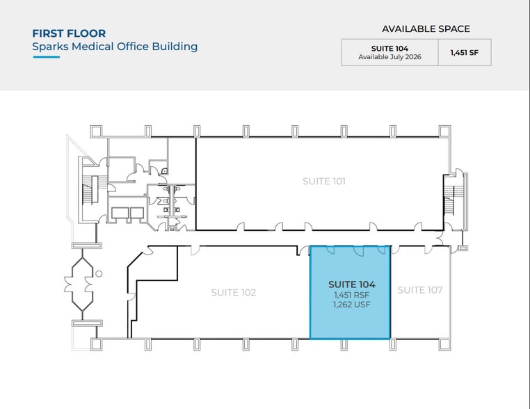 | 1st Floor, Ste Suite 104 | 1,451 SF | Negotiable | Upon Request Upon Request Upon Request Upon Request | Office | - | 2026-07-01 |