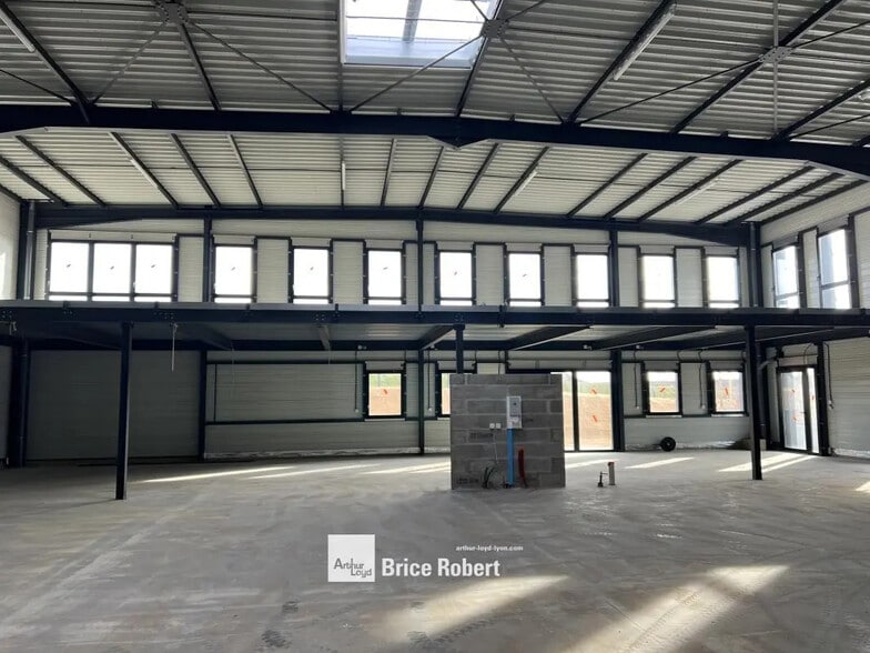 Situé au nord de Lyon, dans la commune de Mionnay, cet ensemble industriel neuf propose une surface totale de 2 752 m², divisible à partir de 259 m². Ces locaux d'activités sont disponibles à la vente ou à la location et sont livrés brut fluides en attente, permettant une adaptation selon vos besoins. Le site bénéficie d'un accès direct aux autoroutes A46 et A432, facilitant les déplacements vers Lyon, Genève et l'aéroport Lyon Saint-Exupéry. La ZAC du Parc d'Activités Economique de la Dombes se trouve hors du périmètre ZFE de la Métropole de Lyon et profite d'un environnement économique dynamique. Les bâtiments offrent un accès de plain-pied, des portes sectionnelles électriques et une structure moderne, idéale pour des activités industrielles ou logistiques. Vitrage 44 2 anti effraction Armoire tarif bleu 18KVA Eclairage hall atelier luminaires à LED Structure en charpente métallique Dallage 1 5 T par mètre carré Finition type industriel quartz Bacs de couverture en acier Bardage double peau Porte sectionnelle électrique 3 x 3 5 mètres Porte sectionnelle électrique 4 x 4 5 mètres Fenêtres profil aluminium avec rupture de pont thermique Ouvrants de type oscillo battant Double vitrage Portes d'entrée Volets extérieurs en rez de chaussée Commande électrique individuelle Mezzanine Dalle béton coulée sur bac collaborant Surcharge d'exploitation 250 kg par mètre carré Eclairage zénithal surface environ 6 pour cent Parc industriel équipé de panneaux photovoltaïques exploités par une société tierce Hauteur libre maximum sous poutre 6 mètres Situation/Transports : Accès direct autoroute A46 Accès Rocade Est Accès Lyon 30 minutes Accès Genève 1 h 30 Accès TGV Lyon Part-Dieu 17 minutes Accès Gare TER des Echets Accès Aéroport Lyon Saint-Exupéry 35 minutes Les surfaces sont indiquées en SDP. Prix de vente C3 (lot en façade) : 1 579 euros HT / m² Prix de vente Bâtiment C4 : 1 550 euros HT/m² Prix de vente Bâtiment D : 1 500 euros HT/m² Prix de vente parking : 4 000 euros HT/unité Terrasse : 10 000 euros HT