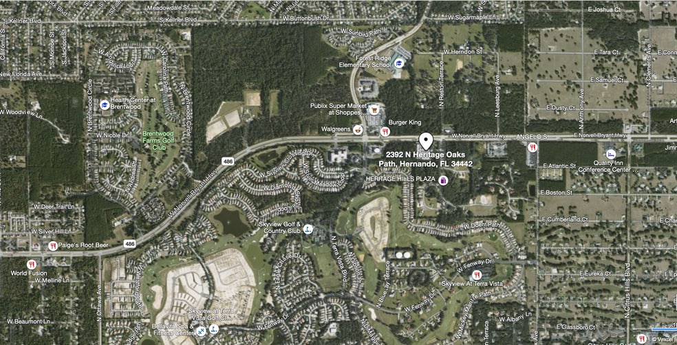 Dynamite location off busy W Norvell Bryant Hwy/ CR 486 in Hernando. 1 acre Out parcel is nestled next to active shopping center with major franchise tenants, Dominos, T-Mobile, Studio 200 Salon, Pak Mail along with Heritage Oaks Veterinary Clinic and Cattle Dog Coffee. Publix, Walgreens and Burger King are located across W Norvell Bryant Highway. Heritage Oaks Path is entrance to subdivision and is contiguous to Skyview Terra Vista Golf Club. Many roof tops in vicinity. Would make a great location for retail, car wash, medical professional.