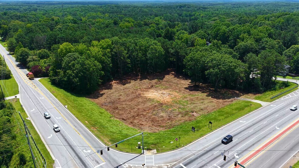 Corner lot with commercial potential at the major lighted intersection of Bill Carruth Parkway and Hiram-Sudie Road near Downtown Hiram. Sewer available. Located in growing area of East Paulding County. Approximately 570 feet of road frontage.
