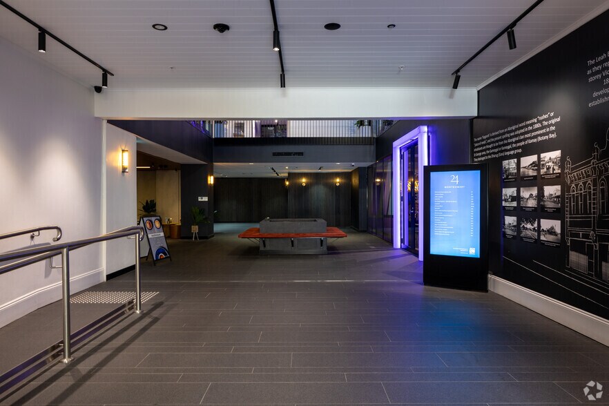 24 Montgomery Street is a recently completed A-grade commercial office building positioned within the core of Kogarah’s CBD. Designed to contemporary standards, the building features a prominent entrance lobby with a soaring atrium, high-quality common areas, lift access, and secure basement parking across multiple levels. The building incorporates modern sustainability and services infrastructure, including high-performance glazing, advanced telecommunications capability, and end-of-trip facilities. An on-site café and professional tenant mix further reinforce the building’s long-term appeal as one of Kogarah’s most prestigious office addresses.