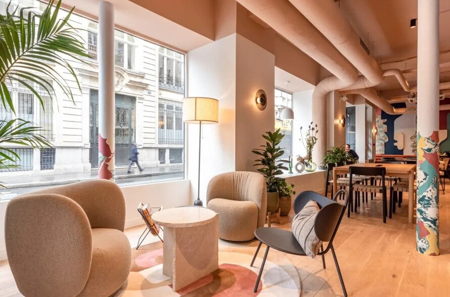 L’immeuble s’inscrit dans un secteur central et animé du 9? arrondissement, reconnu pour son dynamisme économique et sa richesse culturelle. Il bénéficie d’une excellente accessibilité grâce à la proximité immédiate de plusieurs stations majeures, notamment Trinité d’Estienne-d’Orves, Chaussée d’Antin et Havre-Caumartin. Le bâtiment présente une architecture typique du centre parisien, avec des parties communes soignées et des circulations verticales efficaces desservant l’ensemble des niveaux. Les services en rez-de-chaussée participent à créer une expérience utilisateur qualitative, tandis que l’environnement immédiat, riche en commerces, restaurants et lieux de vie, renforce l’attractivité du site. Ce cadre urbain vivant et parfaitement connecté en fait une implantation idéale pour des équipes souhaitant conjuguer centralité, confort et accessibilité.
