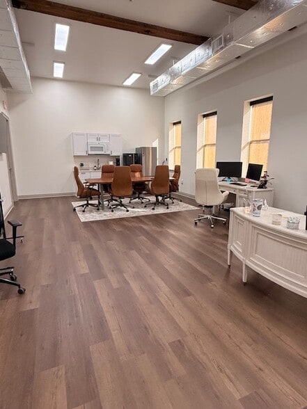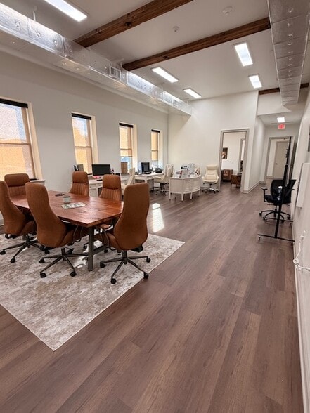 Property Details Size: ±1,005 SF Type: Professional Office Suite Year Built: 1950 | Renovated: 2024 Floor: Second (Elevator Access) Parking: On-site Layout: Private office, open workspace, reception, kitchenette, RR Natural Light: Abundant with architectural interest