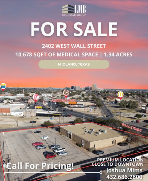 • Situated on W. Wall Street, one of Midland’s main commercial corridors with significant daily vehicle exposure and excellent visibility. Wall Street connects major residential areas to downtown and is a primary east-west artery through the city — positioning your property in a high-movement trade area.