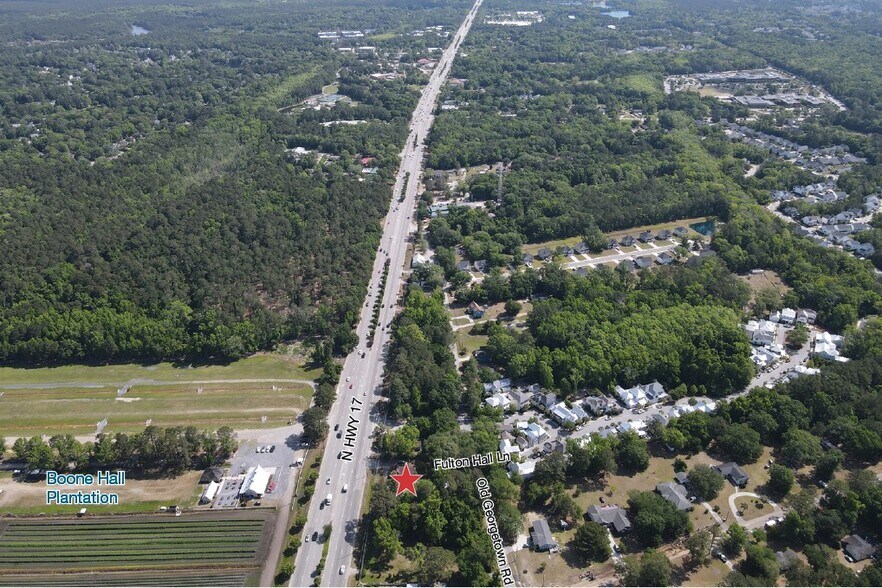 2411 North Highway 17 is located directly across from Boone Hall Plantation in a rapidly growing submarket of Mt. Pleasant. The property has easy access with active curb cuts on Highway 17 and on Old Georgetown Rd at the rear of the property. The parcel has great visibility and high traffic counts. Old Georgetown Highway provides access to Vaughn Ed Kee Parkway that allows circulation to Rifle Range Road without accessing Highway 17. There is an existing ±858 SF structure on the property as well as some fencing in place.