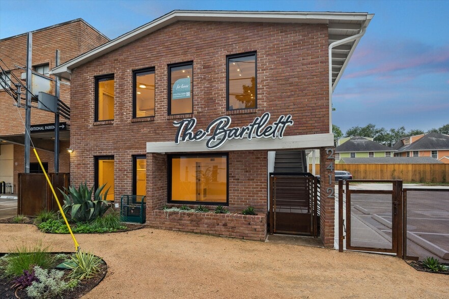 Introducing The Bartlett, a newly renovated office building available for lease offering excellent natural lighting, 24-hour private access, wood floors, spacious open floor plans, creatively designed kitchenettes, ample surface parking, Google Nest HVAC control, and AT&T gig speed internet availability. The updated courtyard and landscaping present a welcoming, professional atmosphere, while the interior spaces provide a modern and adaptable environment for a variety of business needs. Don't miss the opportunity to elevate your brand and enhance your professional image while benefiting from this incredible location in the heart of the Rice Village/West University area.