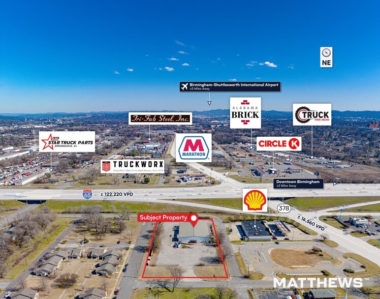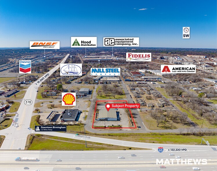 - Prime infill location less than 2 miles from downtown Birmingham and adjacent to I-65 (±122,220 VPD).