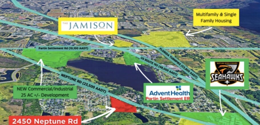 - Located along Neptune Road with 23,500 AADT and near Florida Turnpike and US 192.