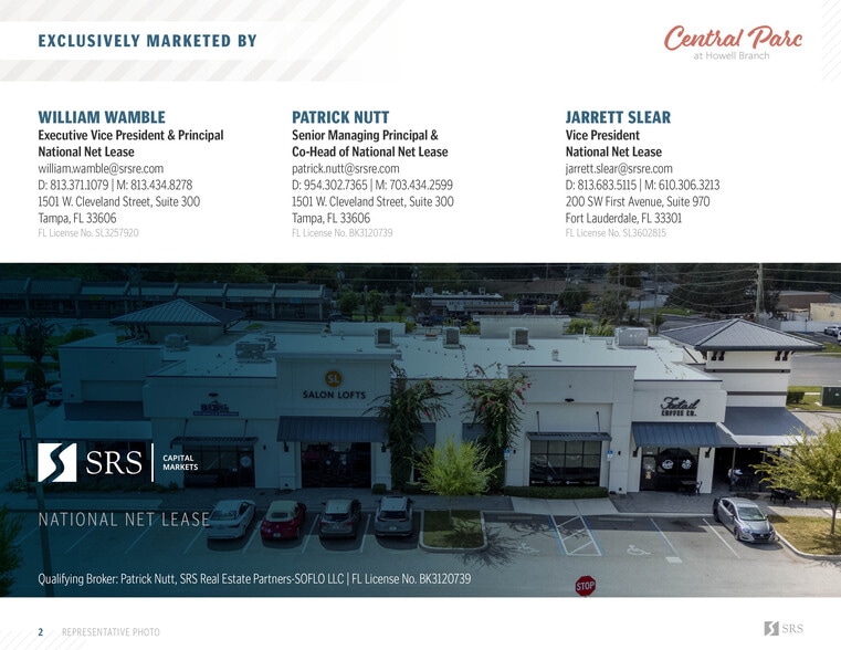 Central Parc @ Howell Branch - Winter Park FL 2451 Howell Market Ln 11,163 SF 100% Leased Retail Building Winter Park, FL 32792 $8,075,265 CAD ($723.40 CAD/SF) 6.15% Cap Rate