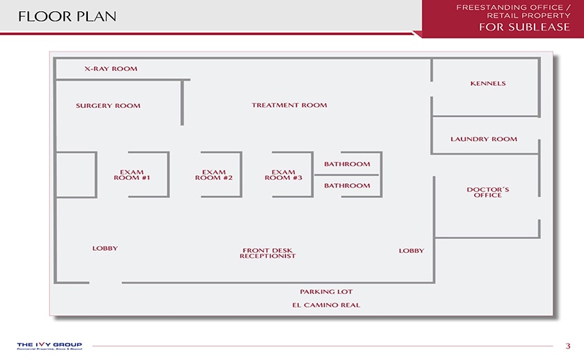 The Ivy Group is pleased to offer a rare sublease opportunity along one of Mountain View’s most prominent and heavily trafficked corridors — El Camino Real. Positioned within the P(38) El Camino Real Precise Plan zoning, the property is well suited for established operators seeking a high-profile presence in a core Silicon Valley market. Formerly occupied as a veterinary clinic and animal hospital, the building can accommodate a wide range of commercial uses, including senior care, daycare, fitness, medical, professional services, art, and select retail concepts. The single-story building features exceptional street frontage, strong visibility, and prominent monument signage—ideal for brand recognition. Private on-site parking further enhances convenience for clients, patients, and staff. This offering presents a unique opportunity for financially qualified tenants to secure a sublease (LED 2/29/2029) in a premium Mountain View location with long-term market appeal. Contact The Ivy Group to discuss tenancy requirements and explore this exceptional leasing opportunity.