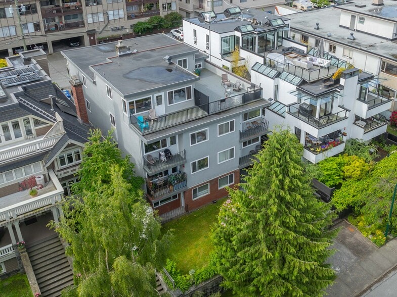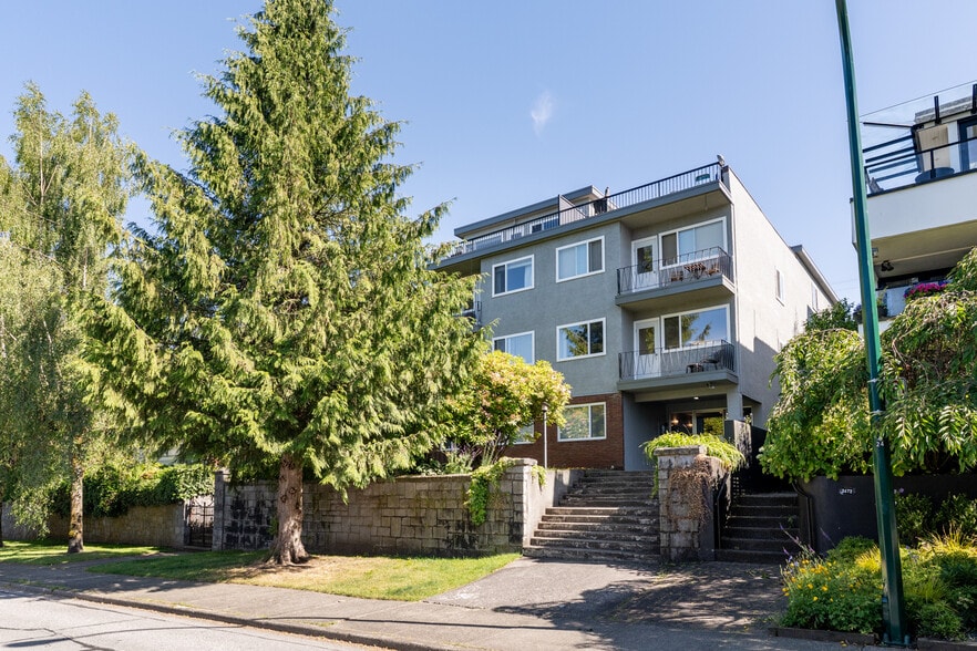 Kits beach 11 unit walkup apartment building including penthouse, only 2 blocks from from kits beach and pool. Panoramic views from the upper units and penthouse. 5 units and penthouse are presently untenanted allowing you to choose your own tenants at current market rents. Potential 4%+ CAP rate. This location is extremely desirable to renters and the ongoing expenses to you will be minimal. Well maintained. Units boast newer cabinets, double glazed vinyl windows (2012), with blinds, hardwood floors, modern fixtures and balconies. 4 parking spaces off the back lane. Boiler replaced in 2010, roof 2012, exterior paint 2023. part of the roof is a shared deck for the tenants. some of the units come furnished. One bedroom penthouse with private deck (vacant), one bedroom with large den (vacant), three one bedrooms (vacant), and six one bedrooms rented. Earn a decent return now with huge potential in the future.