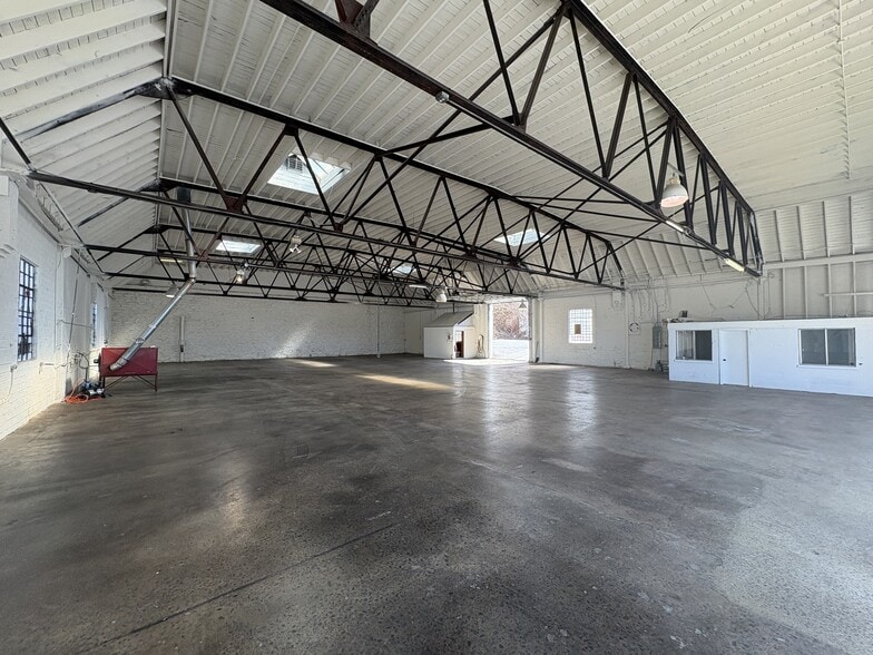 The property features private offices, large open work / retail areas, reception space, restrooms, and ample storage. The layout is easily adaptable for many commercial uses. The front of the building features two 12' FT roll-up doors; beautiful 23' FT wooden barrel ceiling; and concrete flooring.
