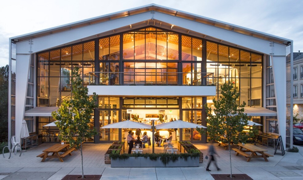 25 North Street is a two-story, approximately 10,802 square foot commercial building located in downtown Healdsburg, California. Built in 2013, the Property is a classic Butler style, pre-engineered metal building system comprised of 70% recycled steel. The Property’s Ground Floor is improved as an open-plan, mixed-use commercial space featuring a side-terrace and eco-friendly landscaped rear yard. The Second Floor is improved as a stunning, open and adaptable event space featuring a substantial pitched ceiling, wood finishes, a full-service commercial kitchen, a side terrace, and a suspended front balcony. Offering incredible natural light, and an open air, indoor-outdoor ambiance, 25 North features nine automatic sliding vertical garage doors and a magnificent glass curtainwall front which connect the Building occupants to downtown Healdsburg.