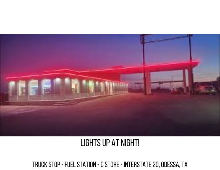 Explore the opportunity of a fully refurbished fuel station and convenience store on Interstate 20 in Odessa, TX! The convenience store features a fully operational kitchen, a walk-in cooler, fryer, pizza ovens, large stainless steel sinks, and a ThermoTek vent hood. The shop has a 16' door to accommodate deliveries. There is also an upstairs office that can be converted into an apartment. Fuel up with 2 covered fuel islands and 3 large, brand-new fuel tanks installed and ready to go! Light up the night with a glowing neon red sure to catch drivers' attention. This fully operational Truck Stop could be yours - contact Brian Steffenilla for more details.