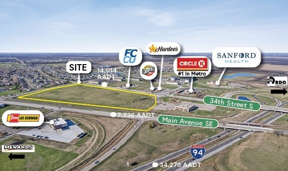Prime commercial land located just east of Menards in Moorhead, MN. This high-visibility site offers excellent interstate access and strong traffic counts, making it ideal for retail, service, or restaurant development.