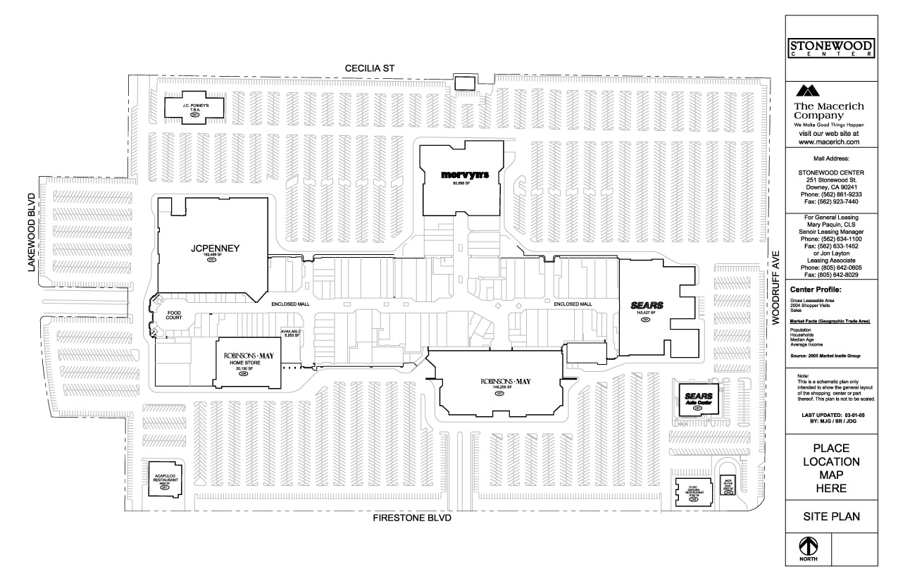 Stonewood Center in Downey, California, is the region’s premier shopping and dining destination, featuring some of the most popular retail brands like Macy’s, Macy’s Home, Kohl's, JCPenney, H&M, Pandora, Hollister, and Candeeland Kids, and great dining options like BJ’s Restaurant & Brewhouse, Acapulco's, Raising Cane's, Buffalo Wild Wings, Toast Kitchen and Bar and Olive Garden. Stonewood Center is an excellent stop for the entire family. Center is getting extensive aesthetic improvements.