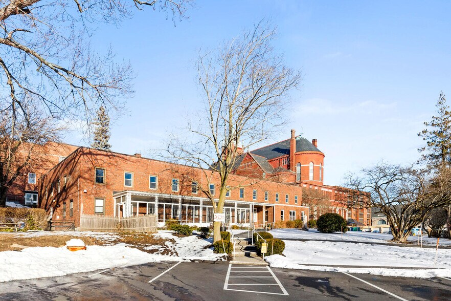 Rare opportunity to lease former convent & former dormitory of Boston Hockey Academy. Approx. 20K sq ft brick building w/approx. 30 car parking sited directly on Route 16 & close to many major routes including Route 93 off-ramp. Across from scenic Mystic River & Condon Shell. Building consists of 2 levels & expansive flexible space. 1st level: multiple classrooms/conference rooms, offices, bathrooms with shower stalls, 1 smaller kitchen & 1 larger kitchen with immediate access to cafeteria, storage space, & stairwells to 2nd level that is comprised of 20+ dormitory-style rooms, larger bathrooms with shower stalls, additional storage space, & access to roof. Basement extends the length of building for extensive storage, etc. Also offers generous frontage space as well as covered porch & patio areas. Terrific versatile space to suit a variety of needs and uses. A highly visible, easy-to-reach location w/parking++ only approx. 6 miles from Boston. $15.00 per square foot. See floor plans & 2520MysticValley.com.