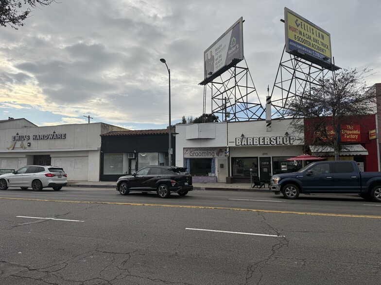 Do you want your own parking lot, car charger, extra storage, and a prime retail/office location with 2-4 million dollar homes steps from you? This space has great exposure on a very busy street with extremely successful businesses on the very side of Robertson. 2 side by side 600 SF spaces totaling over 1200 SF with some attic space. If you want to lease your own building with your own private parking lot, this is your opportunity. Excellent location and tenant synergy! Great traffic, across from a very busy car wash, a new restaurant, next to CARVD Barbershop (extremely popular), Emil's Hardware, The Empanada Factory, The Dance Store, and more. The store/office open space features high ceilings, newer laminate flooring, newly remodeled bathrooms, two storage areas, one large attic built out as a storage area not accounted for in the square footage, installed shelving, new electrical, many outlets throughout, and parking for at least 5 cars. There are two front entrances, one for 2521 S. and one for 2523 S as well as two back entrances.