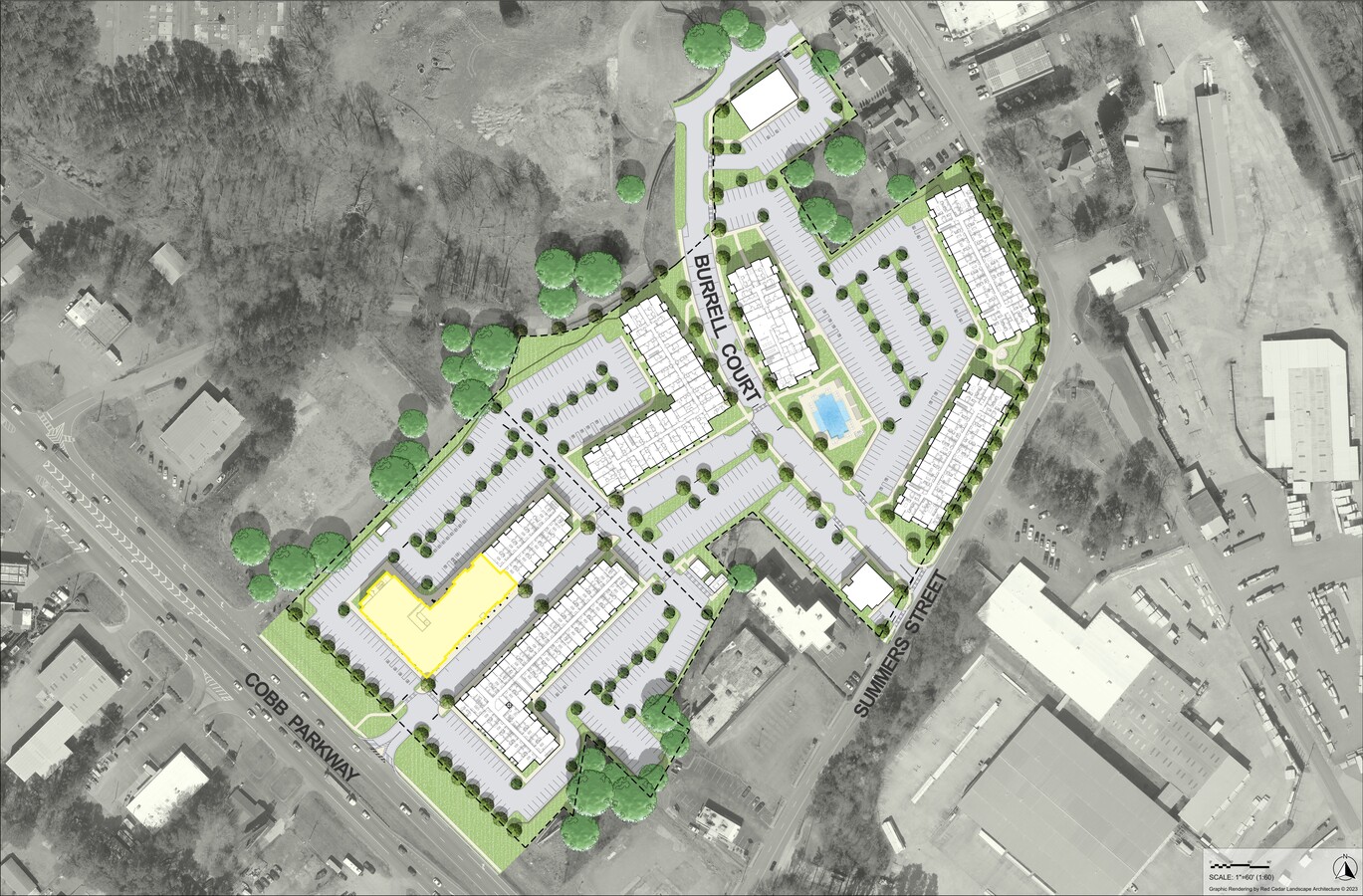 1st generation restaurant and retail spaces under new apartment development, the Landing Kennesaw. Spaces to be delivered Summer 2024.