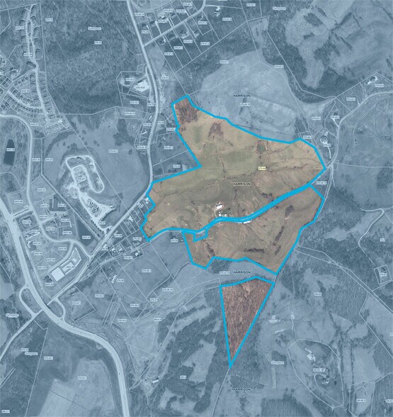 Located outside of city limits, this property is situated within the Simpson District of Harrison County. The site consists of multiple irregular shaped parcel totaling 122.89 acres.