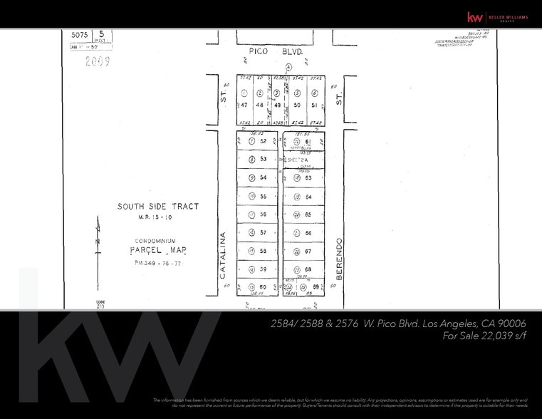 Rare opportunity to acquire approximately 0.32 acres (±14,000 SF) of land located on W Pico Blvd between Catalina St and Berendo St in Los Angeles. The property consists of two contiguous parcels (Lots 48 & 49) situated in a dense urban corridor with strong surrounding residential and commercial activity. The site may be suitable for a contemporary mixed-use or office-condominium style development concept appealing to younger professionals seeking flexibility between work and living, subject to zoning and city approvals. Excellent street frontage and central location support long-term investment and redevelopment potential. Buyer to independently verify zoning, permitted uses, development feasibility, and all applicable regulations.