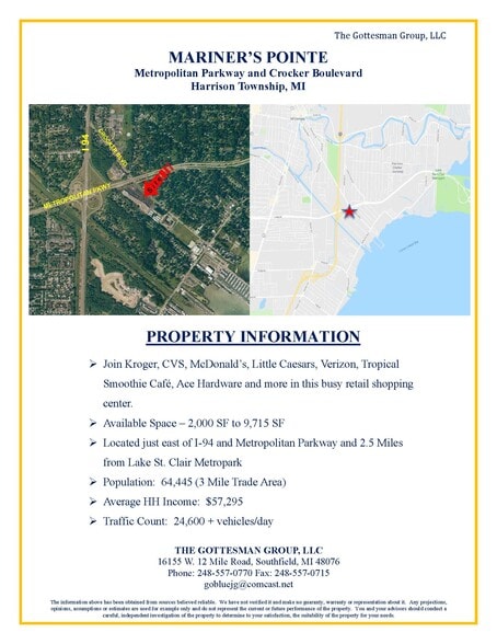Mariners Pointe Shopping Center 25990-26300 Crocker Blvd 1,555 - 15,755 SF of Retail Space Available in Harrison Township, MI 48045
