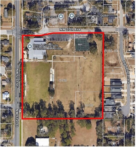 Infill development site in Alachua County/Gainesville FL. Vacant land / athletic fields with storage facility and 20,000 SF metal building.
