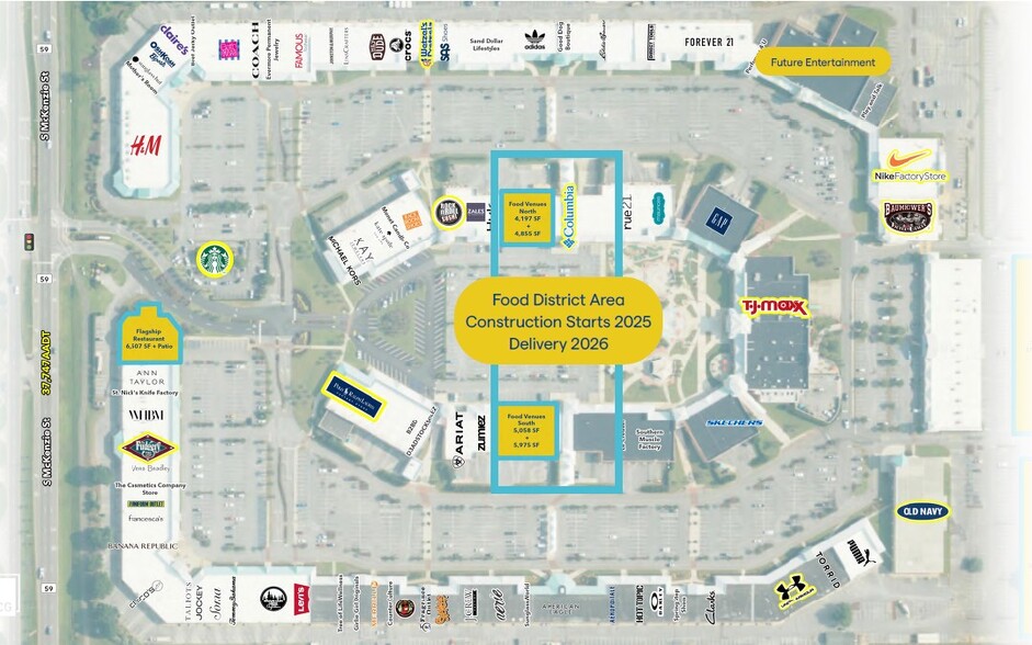 Baldwin County is one of the fastest growing counties in the U.S.—ranked #7 nationally by the Census Bureau and #1 in Alabama. Nearly all of that growth is driven by inbound migration, which continues to fuel sustained residential demand. Just 10 miles from the beach and surrounded by 18,000+ hotel rooms and rentals, Tanger Foley includes tenants like Nike, Coach, Under Armour, Kate Spade, Michael Kors,and Polo Ralph Lauren. Shopping here isn’t an afterthought—it’s a planned part of the Gulf Coast experience.