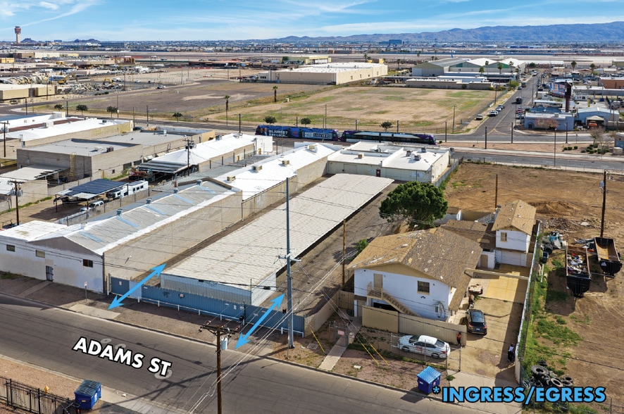 ±4,940 SF industrial building with a ±6,916 SF canopy structure on ±0.54 acres of asphalt paved land available for sale. The property is fully fenced and secured with a block wall perimeter and has two (2) points of ingress/egress from Adams St. The site is adjacently located to Phoenix Sky Harbor Airport, with frontage on Washington St (15,000 VPD) and less than 1 mile to I-10.