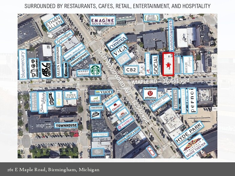 In the heart of Downtown Birmingham. Positioned above the street-level presence of Jos. A. Bank, the second floor of this boutique, two-story building offers an office environment designed for both productivity and lifestyle. Offices range from 212 rentable square feet to an entire 6,357 rentable square foot full floor, with the ability to fully renovate and tailor the space for a long-term tenant. Tenants enjoy elevator access, shared conference room, kitchenette, Wi-Fi, welcoming lobby, and prominent building signage for a majority occupant. The property is owned and professionally managed by The Surnow Company, whose headquarters are located just a few blocks away, ensuring responsive, hands-on management supported by a full in-house maintenance staff. Set in the heart of downtown Birmingham, the building is surrounded by municipal parking decks and immersed in a walkable neighborhood of acclaimed restaurants, cafés, retail boutiques, boutique hotels, gyms and nearby parks—an ideal setting to work, meet, and recharge. Call or email today for a tour! Rob Krochmal call/text 248-867-3304 or email rob@surnow.com