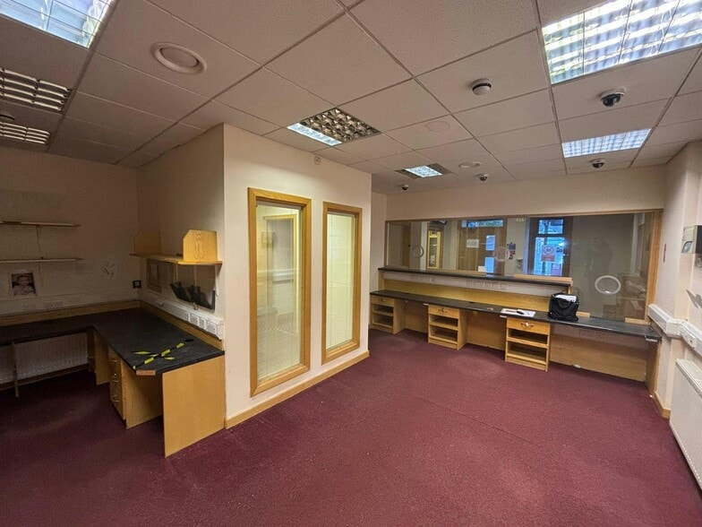 Large double fronted Class 1A/office premises with extensive frontage onto Main Street. Internally provides front reception, rear main open-plan office, three partitioned smaller offices, rear tea-prep, male and female WCs. Gas central heating is provided.
