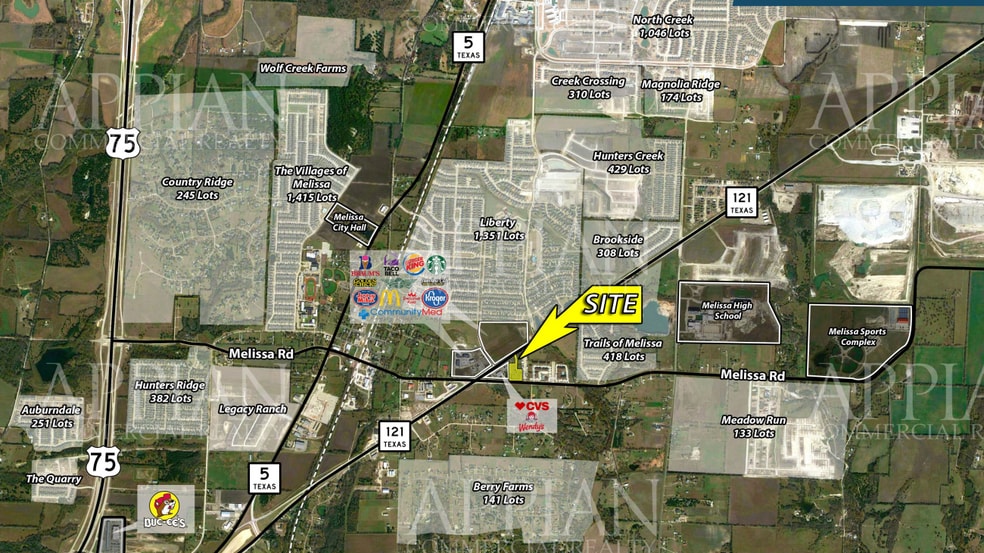 Prime opportunity in the heart of one of North Texas’ fastest-growing corridors. This 3.67 SF parcel is strategically located just off Highway 121 and Melissa Road, offering excellent visibility, immediate access, and strong surrounding growth. Positioned along a major commuter and commercial corridor, the site is well suited for future redevelopment or investment, benefiting from the continued expansion of retail, residential, and commercial development throughout the area. Located in Melissa, this property provides proximity to major employers, new housing developments, and regional connectivity via Highway 121, making it an attractive option for investors, developers, or owner-users seeking a foothold in a rapidly evolving market.