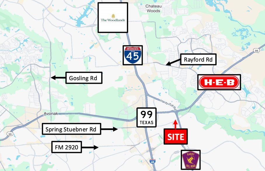 This +/- 40 AC tract is highly desirable for both developers and/or users as a prime location for office warehouse development. This property has over 2,500 feet of frontage along the Hardy Toll Rd, an access point on Riley Fuzzel on the northern border, and a 60’ access easement to Aldine Westfield on the southwestern border of the property. There is also +/- 9 AC available on the northwestern border of this property that would bring the total site to +/- 49 AC with multiple access points on Aldine Westfield and one on Riley Fuzzel. The property is desirably located just southwest of the intersection of the Hardy Toll Rd and the Grand Parkway less than 6 miles from The Woodlands giving this property fantastic access to the Houston highway system as well as proximity to higher end homes and development. We have turn key investment opportunities as well as build to suit options available. Please contact broker for more information on potential development options and pricing.
