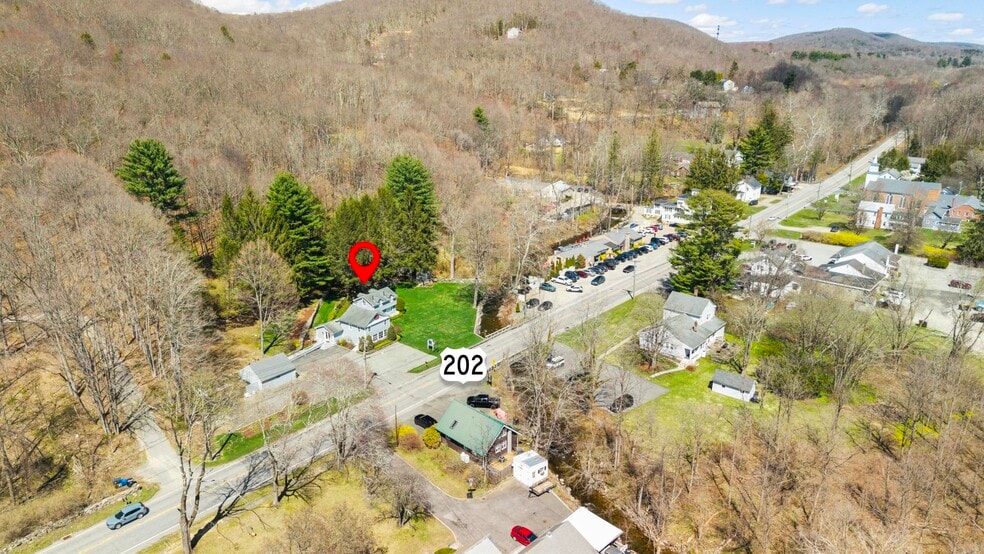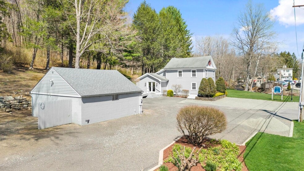 Prime commercial opportunity in the heart of Marbledale Washington CT. On Route 202 next to Iconic "White Horse" restaurant. With over 5,000 cars passing daily, offering exceptional visibility and exposure for your business. This meticulously maintained property features two separate buildings w/ a detached two-car garage, an abundance of parking to accommodate a range of uses. Rich in character, the property showcases antique interior architectural details including wide-plank hardwood floors, exposed wood beams and oversized windows that fill the spaces w/ natural light. The primary building offers a spacious & flexible floor plan, ideal for professional office use, with room for a welcoming reception or sitting area, client meeting space & a private rear office. A kitchenette adds convenience, while an upper loft area provides additional office space and a second private room. Between the two buildings, a charming patio with a stone wall and serene wooded views creates a unique & inviting setting. The second building includes a full kitchen, full bathroom, and a versatile main level with tile flooring. The upper level offers additional space suitable for an office, studio, or potential residential/rental use (subject to approvals). With its combination of location, character, parking, and flexibility, this property presents endless possibilities for business owners and investors alike. Take advantage of this rare opportunity in a highly visible and desirable location!