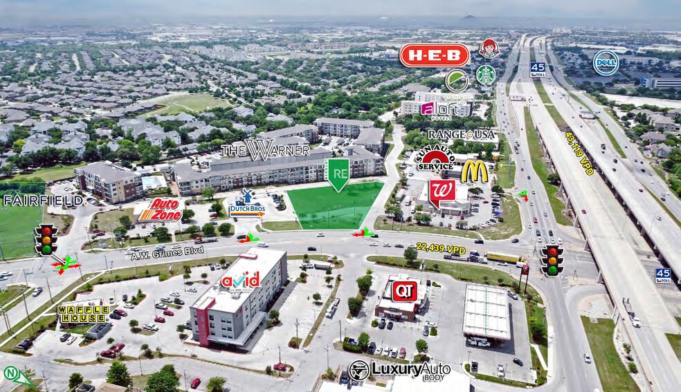 - Located at TX-45 & AW Grimes with over 43,119 vehicles per day