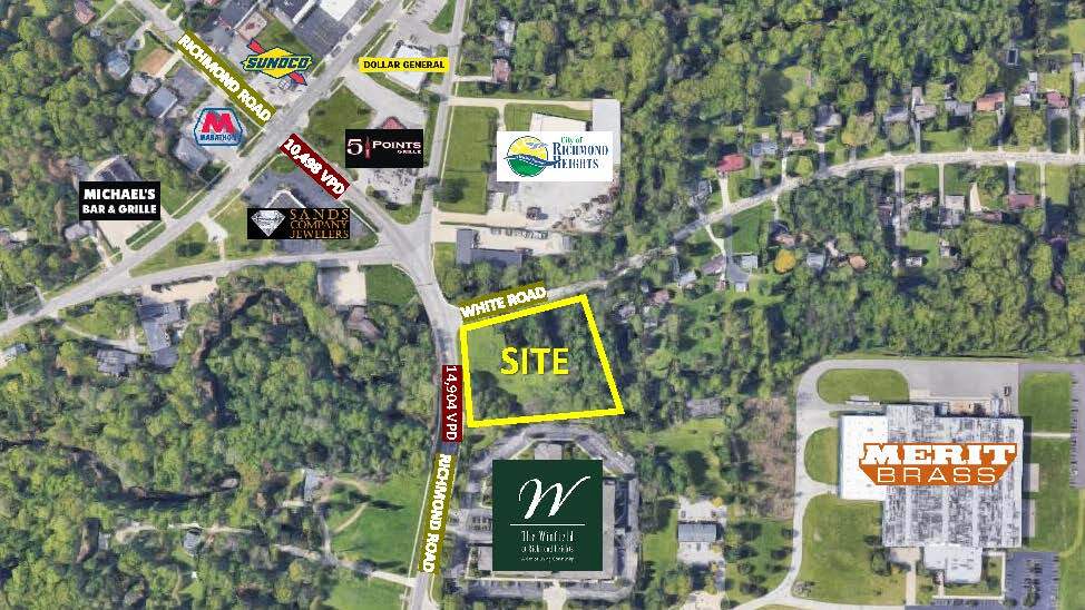 Property located on the corner of Richmond Road and White Road. Easy access to I-90 and I-271. Sits adjacent to a multi-family & industrial complex Nearby retailers include 5 Points Grille, Dollar General, Dollar Tree, Marc’s, Sands Company Jewelers & more. Daytime employees within: 1 Mile: 7,901; 3 Miles: 72,977; 5 Miles: 209,251.