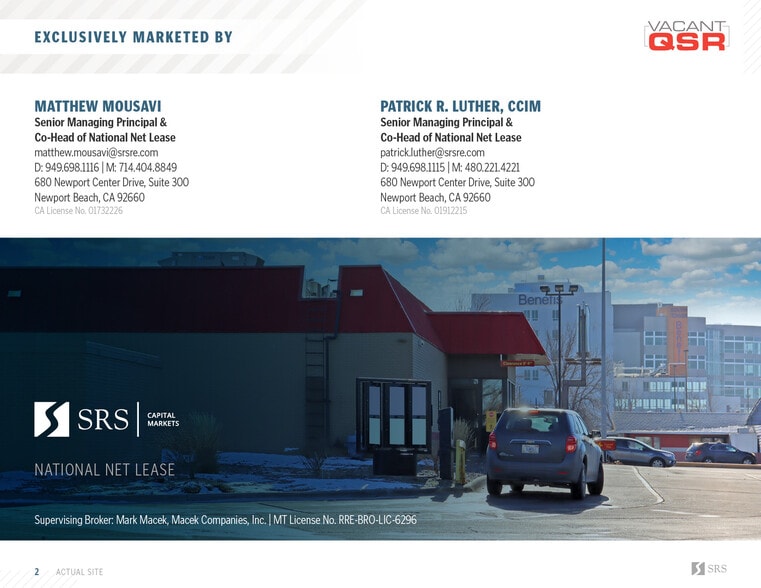 Former QSR | Re-Tenanting | DriveThru 2625 10th Ave S 4,539 SF Retail Building Great Falls, MT 59405 $4,026,650 CAD ($887.12 CAD/SF)