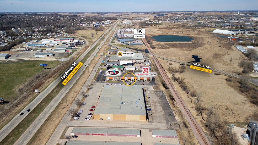 Strategically located with quick access to Highway 14 and West Circle Drive, this versatile 3,000-square-foot property offers a premier professional or specialized business opportunity in Northwest Rochester. This fully built-out, turn-key space features five private offices and a dedicated reception area, providing a polished environment for both staff and clients. A standout feature is the expansive 1,213-square-foot open area with high ceilings, offering a functional layout that accommodates a variety of business needs. For added flexibility, you can lease individual offices or the large open room separately. The property’s configuration is uniquely suited for professional offices requiring on-site packaging or light warehouse space, clinics, occupational therapy, rehabilitation, or specialized fitness classes. With its proximity to major transit corridors, the site ensures effortless connectivity to the city and the surrounding region. This professional space is ready for immediate occupancy to capitalize on the area’s growing commercial demand.